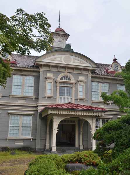 Parmi les musées visités à Yamagata, celui de l'éducation m'a permis de me plonger dans un monde inconnu pour moi : celui du système scolaire japonais. Le musée est abrité à l'intérieur d'une maison en bois de style Renaissance (en photo ci-dessous). Le toit a ceci d'original qu'il est surmonté par une tourelle supportant une horloge. Les fenêtres centrales du premier étage sont encadrées par une véranda de style ancien. Un porche coiffe la porte d'entrée. Il faut franchir l'imposant portail à l'entrée de l'enceinte pour découvrir cette bâtisse largement dissimulée dans la verdure. A l'intérieur, le craquement du plancher sous nos pas rappelle le poids des ans. Je suis accueilli par une jeune fille qui me remet un ticket et me demande de me déchausser à l'entrée (...)