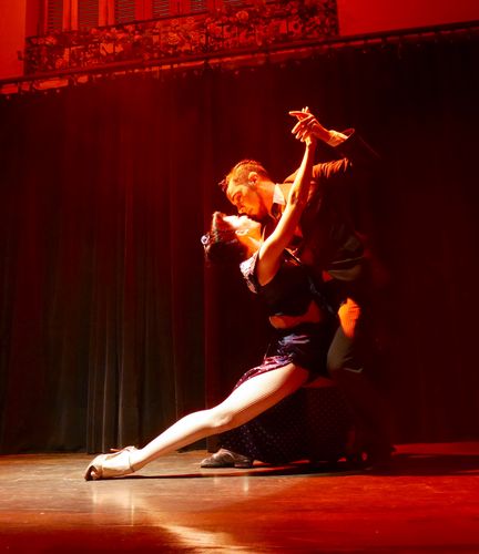 Cette fois, je suis accompagné de deux amis, Valérie et Luc, qui découvrent avec moi Buenos Aires. J'ai choisi de les emmener ce soir au Complejo Tango, pour assister à un diner-spectacle de cette danse si populaire. Tous les soirs de l'année, cet établissement, idéalement situé dans le quartier de Balvanera, ancien quartier des poètes, offre aux touristes de passage cette magnifique prestation au cours de laquelle chanteurs et danseurs professionnels se produisent sur scène pour retracer l'histoire du tango. La soirée débute avec un cours de danse (ci-dessous), suivi à 20h00 d'un délicieux diner (entrée, plat principal et dessert) arrosé de vin argentin issu de la cave du restaurant (...)