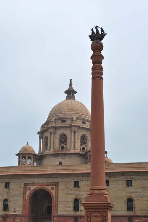 Aujourd'hui, jour de fête nationale en France, je me trouve à New Delhi, dans le quartier de Vijay Chowk. Cette esplanade , située au pied de Raisina Hill, servait à commander le palais du vice-roi, devenu aujourd'hui le Palais présidentiel. C'est là que se déroule chaque 29 janvier la cérémonie du Beating of the Retreat , qui évoque la fin de la bataille et le moment où les armées battent en retraite. L'occasion est donnée aux fanfares de défiler devant les North et South Blocks. Il y a de nombreuses forces de police dans la zone ce matin car un cortège officiel de parlementaires indiens s'approche. Je ne peux entrer à l'intérieur du Sansad Bhavan, le Parlement (photo ci-dessous). Les accès aux bâtiments que je photographierai me seront fermés, car ces endroits sont essentiellement des immeubles officiels (...)