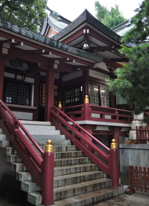 En préparant mon séjour à Tokyo, j'étais tombé sur une fête qui se tient chaque année dans le quartier Kasushika-ku de Tokyo, au sanctuaire de Kasai (Kasai Jinja) : Nagoshi no Harai ( les Mille jours de bonheur que l'on obtient en franchissant un cercle de roseaux tressés (appelé Chinowa) selon un rite particulier ( cela ressemble à ce que j'avais vu au Temple Atoga récemment). Le temps, lui, ne se prête pas à la fête: A mon arrivée, j'entends de la musique mais il s'agit d'un CD et la musique traditionnelle avec orchestre et danses annoncées sur internet ne sont pas au rendez-vous. Je suis superbement reçu par un membre du sanctuaire qui me confie à une jeune femme prénommée Nao et qui me servira de guide pendant la visite.